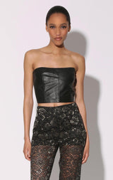 The Tanvi Top is our strapless leather corset with shaping seams for a flattering fit. Style it over a collard shirt, under one of our jackets, or show it off on its own