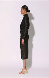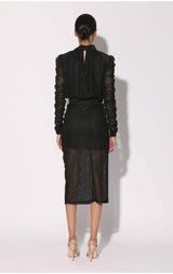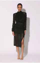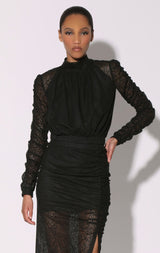 Rouching detail in our alluring sheer knit fabric; the Sylas top is a sassy crop top that can pair back to anything