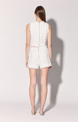 With a flattering high waist shape in our luxe tweed fabric, The Dora Short features flap pockets with engraved buttons and fringe accents. Wear it with the Dara Top for a chic set.