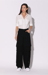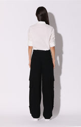 Slouchy and chic the Robin Pant has multiple snap flap pockets at each thigh and edgy strap detail from the knee. Wear it with the Ronnie Jacket for a cool set