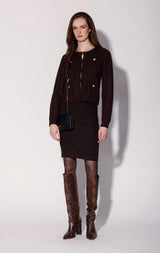 The Giselle Cardigan is the comfort classic elevated with a chic sweater knit pattern, classy pocket details, and luxe buttons. Pair back to the Gia Skirt for a fabulous 2 piece look
