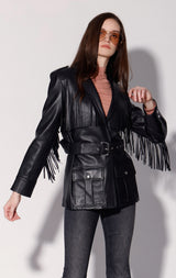 Western romance combines with safari style in the Linda Jacket. Accents of whimsical fringe and cargo pockets in our supple leather make this look the star of the season