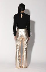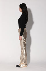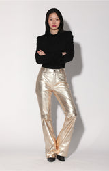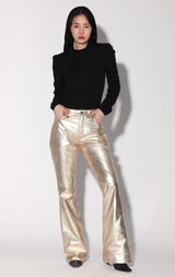 A fabulous flare pant with 5 pocket jean details, the Dimitri Pant in our metallic leather will have all eyes on you
