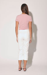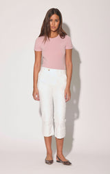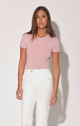 The Jennifer Top is the perfect fitted baby tee with shirred sleeve detail. Coming in an array of colors, it will be your new go-to