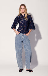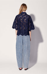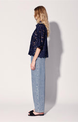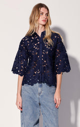 The Ollie Top is an elevated oversized button down. Coming in our beautiful lace fabric, it features dropped shoulder short sleeves for a modern twist.