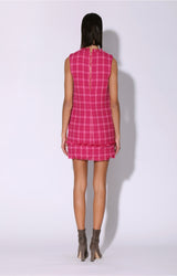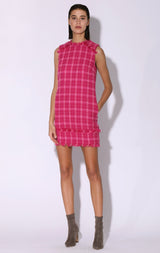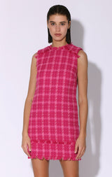 Mod style reimagined, the Bethani Dress is a sleeveless shift dress in our chic tweed fabric with fringe details and inseam side pockets