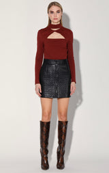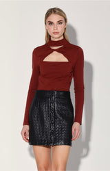 The Shakira Top is a edgy mock collar top with front cut out twist detail! Dress it up with a pencil skirt or wear with jeans for an everyday look.