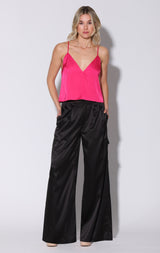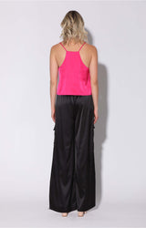 A pant that is sure to make a statement, the Denver Pant is a wide leg style that features cargo pockets and comes in several colors of our sultry satin fabric!