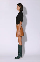 The Izzie Skirt brings attitude to the pleated mini with its low rise fit and our butter soft leather