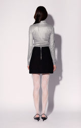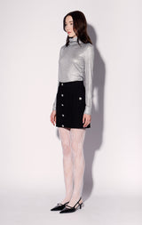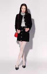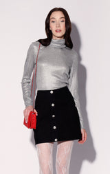Uprgade your wardrobe with the suede mini Libby Skirt. This style features patch pockets, engraved silver buttons, and looks even more amazing paired with the Lolita Jacket