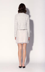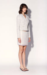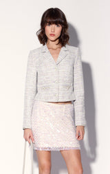 The Nadene Skirt is the ultimate party mini. With dazzling opalescent beading, and sassy low rise tailored fit, it works great with a rib tank or as a set with the Nancy Top