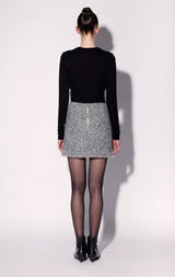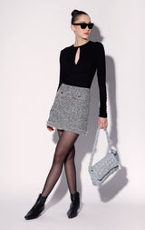 The Reba Skirt is a mini in our luxe tweed fabric that showcases fringe details and faux welt pockets with novelty buttons. Wear it with the Mabel Jacket for a classy set