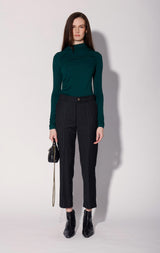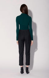 A playful take on suiting style is the Shania Pant. This cropped bottom features a chic pin tuck detail, and sassy inseam slit, for a classy cool vibe