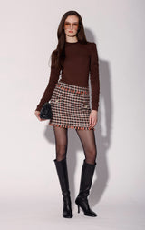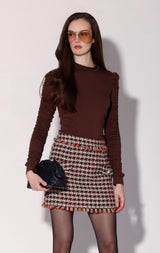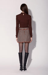 The Vallery Skirt is a mini in our luxe tweed fabric that showcases fringe details and faux welts with pearl embellished buttons. Wear it with the Veronica Jacket for a classy 2 piece set