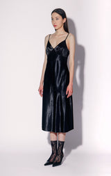 The Bristol Dress is the sleek slip style you can't live without. In our hammered satin quality with a side slit, this midi is sophisticated chic at its finest
