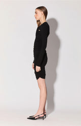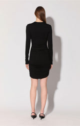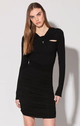 The Calista Dress is the effortless going out dress at its finest. With its intricate twist and shirring details, this sleek style is both edgy and feminine