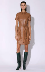 The Chloe dress is a sleek yet everyday take on the shirt dress. The collared button down details and tie waist will bring out are both feminine and flattering