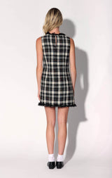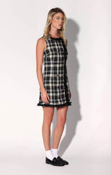 Bring all the mod vibes with the Marie Dress. This perfect mini shift dress in our stylish plaid tweed fabric with novelty buttons and tulle ruffle accents, is a fabulous addition to your wardrobe