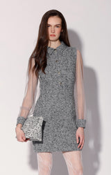 Elevate your tweed style with the Myla Dress. Showcasing combo tulle sleeves and a tailored fit, this mini is a must have