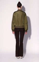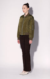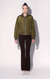 Add classic cool to your closet with the Elias Jacket. This bomber puffer style includes a sleeve zip patch pocket and exposed center front double ended zipper closure