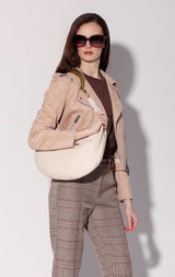 The Jane Hobo is our key carry-all with ample storage. This shoulder bag showcases a minimalistic silhouette and an engraved handle with interchangeable strap.