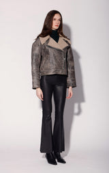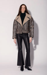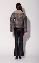 Vintage vibes and shearling style come together with the Richie Jacket. Featuring a short boxy fit, its exaggerated drop shoulders and seaming detaisl in our buffed leather will elevate your every day look