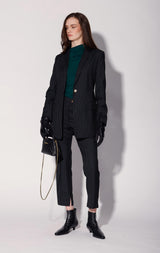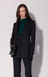 For a smart and sleek jacket style go for the Trishelle Blazer. This slim fit blazer in our stripe suiting is a femme fetale must have