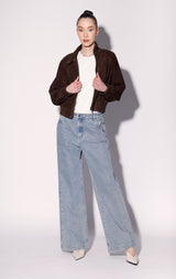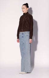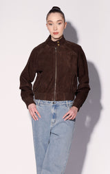 Short and chic, the Bowie Jacket is the suede bomber you've been waiting for. With a snap high neck collar and flap pocket detail, it will elevate your every day look