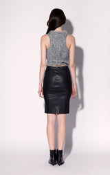 Not your average pencil skirt, The Mae Skirt is a stretch leather update to this essential silhouette