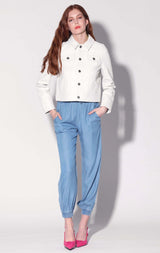 Elevating a vintage denim silhouette in our luscious leather, the Laine Jacket adds an instant cool factory to your closet