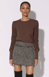 Master effortless dressing with the Dot Top. Made in our iconic jersey knit fabric, it showcases gathered long sleeves and a classic crew neck