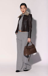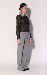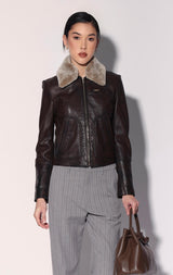 Liza Jacket, Brown Leather Taupe Fur - Leather