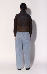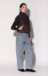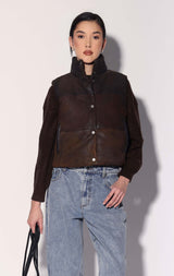 Milo Vest, Buff Mocha Suede Puffer - Leather