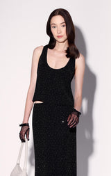 Emma Tank Top, Black and Rhinestone