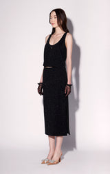 Getting dressed up is easy with the Emma Tank Top. This relxed fit deep scoop style is great to sparkle on its own with jeans, or as a set with the matching Gianna Skirt