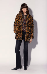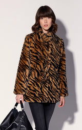 The Priscilla Coat is perfect for a night out. Coming in an eye catching animal print faux fur, this mock neck style is great over a dress or to elevate your fave jeans