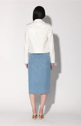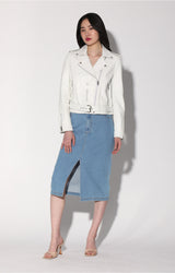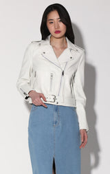 With a vertical exposed zipper pocket details and belted waist, the Kelsey Jacket is a fresh take on the moto jacket!