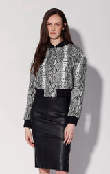Cropped with slouchy shoulders, the Lindsey Jacket is a must have bomber style. Made in our fabulous snake foil leather, it gives an extra edge to any outfit