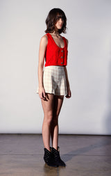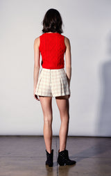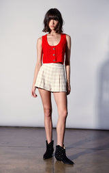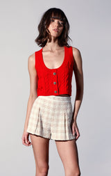 The Carson Top is a sassy update to the sweater vest style. With a scoop neck and crop length, wear it as a top or layer it over your favority button down.