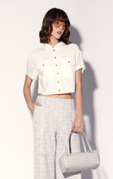 Casual cool at its finest, the Clarissa top is a boxy crop fit style with patch pockets.