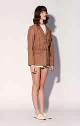 The Ray Blazer is a classic boyfriend style fit in velvety lamb nubuck. Featuring a contrast collar and texture seam details it will elevate any ensemble