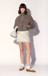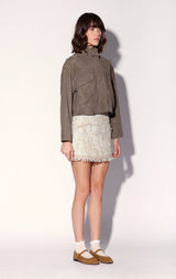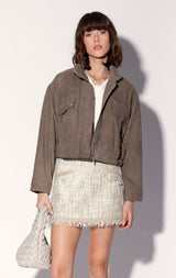 With a stylish funnel neck and oversized pockets, the Rihanna Jacket is a must have. Featuring dropped shoulders and elastic waist in our luscious suede, its slouchy fit makes every outfit effortlessly cool