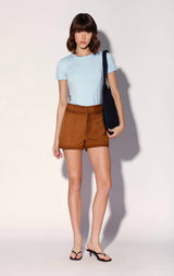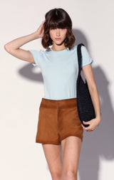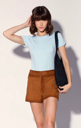 The Jennifer Top is the perfect fitted baby tee with shirred sleeve detail. Coming in an array of colors, it will be your new go-to