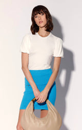 The Shelly Top is the sweet and chic update to the everyday tee. With an accent of volume in its balloon style sleeves and a fitted bodice, it goes with every ensemble.