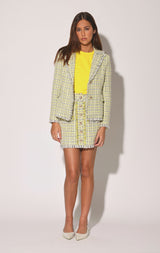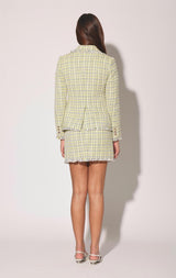 The Damon Blazer is an easy fit longline jacket in our stylish tweed fabric with fringe trim. Wear it with the Dalia Skirt for a fabulous set