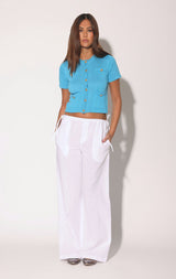 Upgrade your casual look with the Louise Cardigan. This short sleeve style features faux welt pockets, patch pockets, and engraved gold buttons
