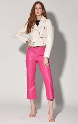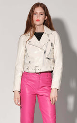 The Nicole Jacket is the cropped moto jacket you've been waiting for! With a belted waist and contrast zippers it brings a cool factor to complete any outfit