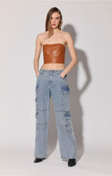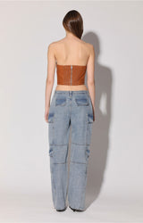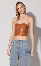 The Tanvi Top is our strapless leather corset with shaping seams for a flattering fit. Style it over a collard shirt, under one of our jackets, or show it off on its own