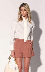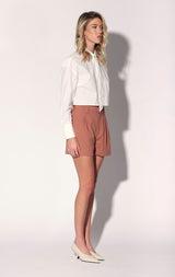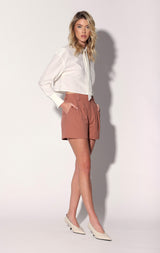 The Beau Short is in a high waisted style that’s perfectly pleated. In our fresh pinstripe fabric, its even better when worn with the matching Serena Blazer