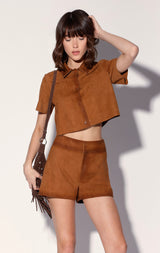 Kendra Short, Oak Suede - Leather